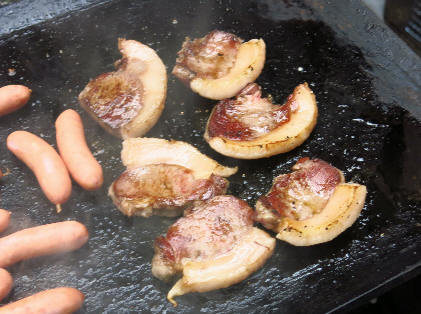 炭火の鉄板でステーキです